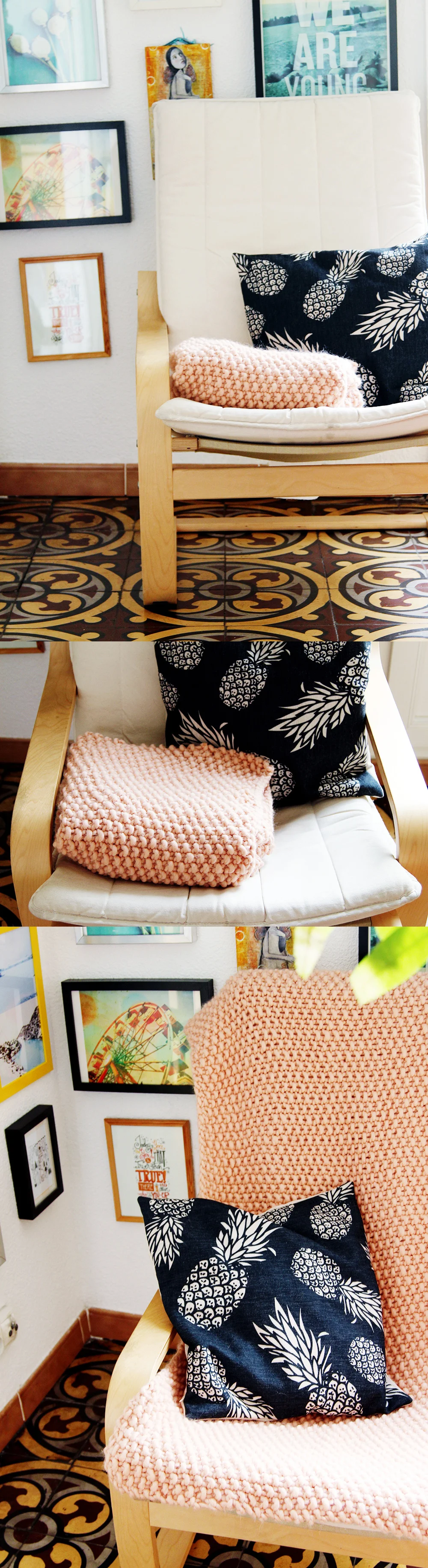IT IS DONE! I finally finished my oh-so-cuuute Udon blanket that I ordered from We Are Knitters! After 5 Salmon THE WOOL yarn balls (I think PEACH would be a more appropriated name for that yarn), using circular 15mm Knit Pro needles (LOVE those!) and a few hours knitting in front of TV or talking with friends, it is ready and I am in LOVE!