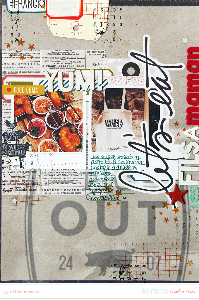 I wanted to share with you this brand new layout I recently made about FOOD. Yes, this could have appeared in my Project Life (even I only got started on my 2016 PL for real) but I so loved the restaurant we went to, the food AND the restaurant itself, that it deserved a real layout!
