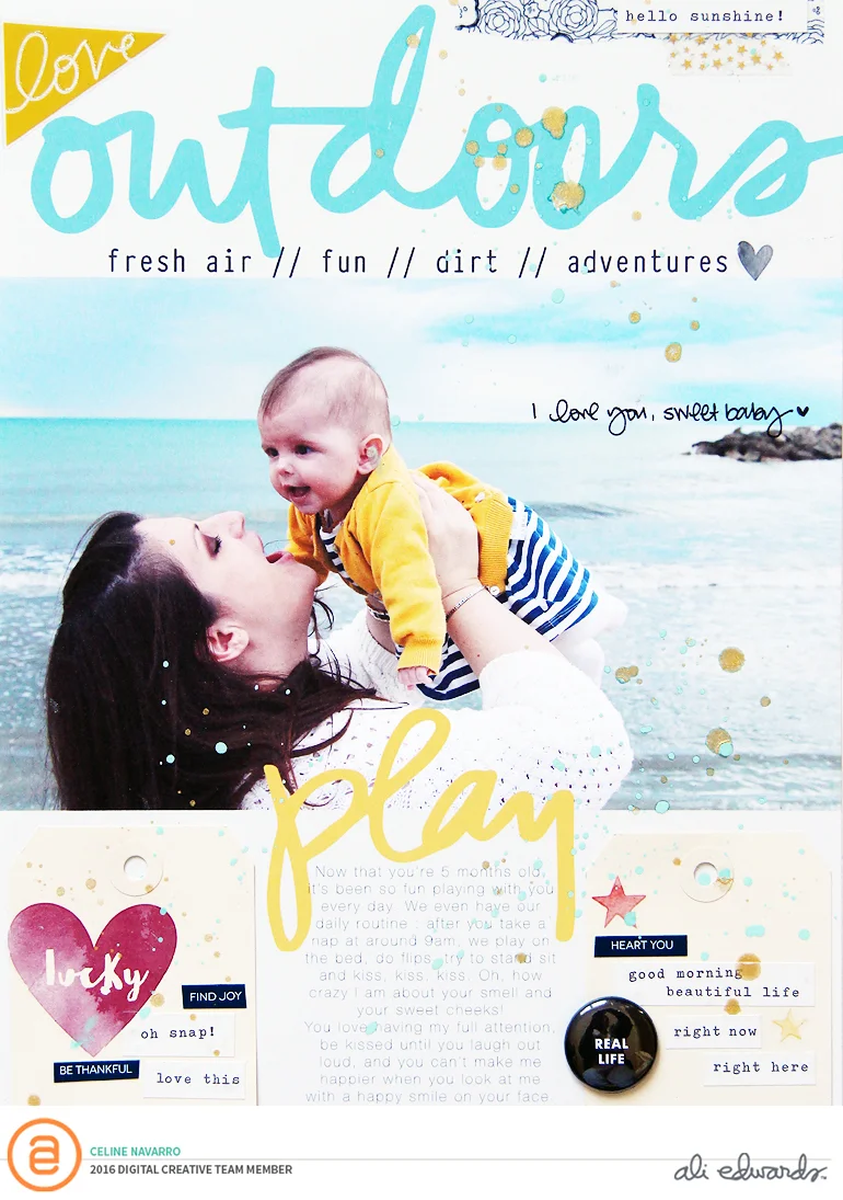 This month, I created these two layouts for Ali Edwards Creative Team. See, I managed not to make a baby layout! :D