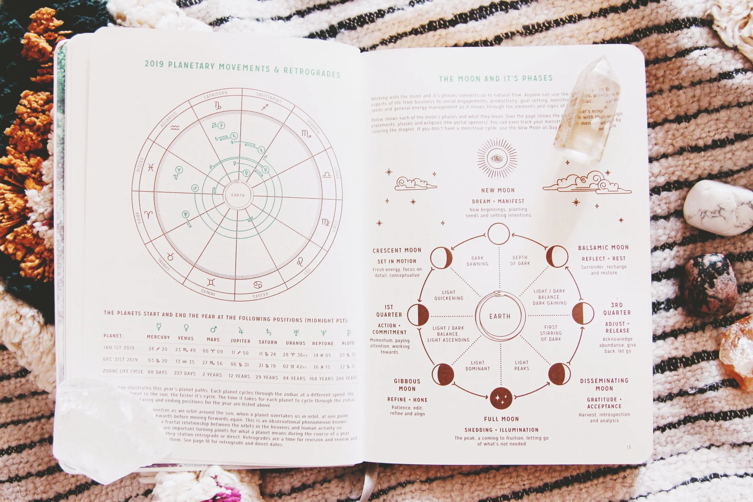 So, I've already told you about it briefly in this blog post, about my Magic of I lunar planner. I probably underestimated the usefulness of this planner the first day I received it. Not in the quality of the content contained in its gorgeous pages, but especially in what it was going to open to me: a new perspective at the effects of the Moon and the planets, a growing curiosity for Astrology - which grew way faster as I met the incredible HolisticZaza on insta - and above all, a new way to rock my life, its cycles, whether physical or emotional. Every month, I look at the position of the planets in my planner and it tells me clearly the days when it's best to set up concrete actions for work, or if it's better to sit down and brainstorm on my projects.